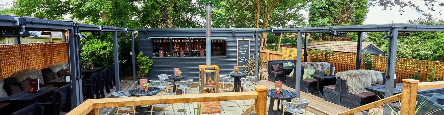 Step into our inviting beer garden, where outdoor comfort meets seasonal delight. Designed to be enjoyed all year round thanks to its wooden pergolas covered in twinkling fairy lights, cosy firepits promising warmth and relaxation even on the chilliest evenings, and spacious open terraces. The perfect spot to savour the seasons.